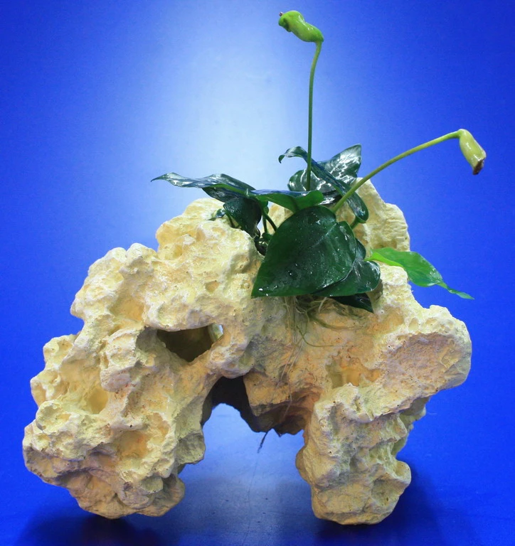 Lochstein Gr. M mit Speerblatt / Anubias nana auf künstlichem Mondstein